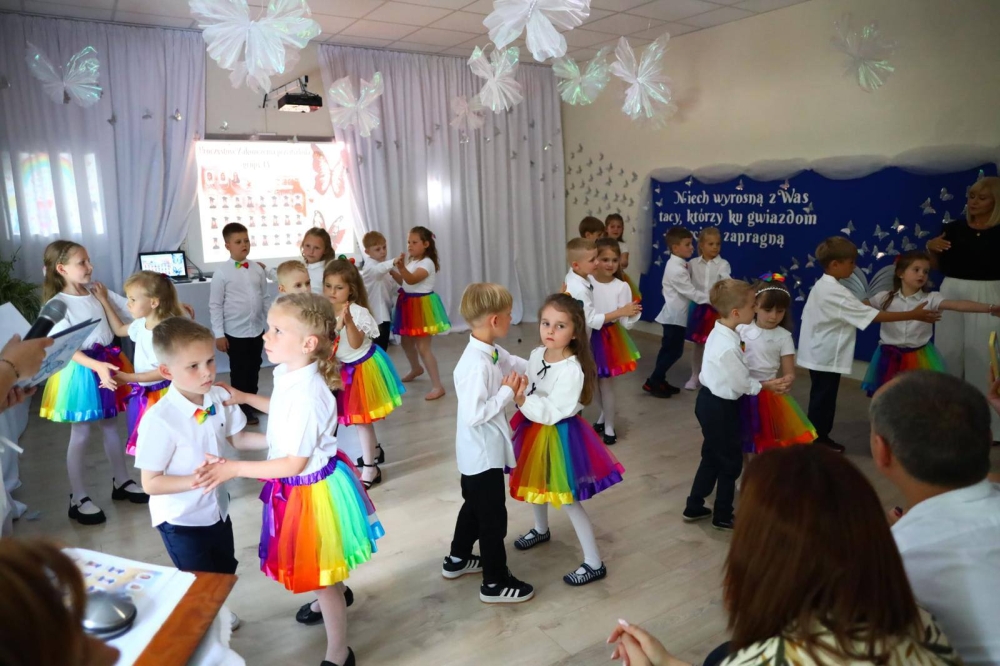 Uroczystość rozpoczęła się krótką, częścią artystyczną, po której dzieci z ogromnym wdziękiem zatańczyły dostojnego poloneza, który wywołał wzruszenie i zachwyt wśród wszystkich obecnych.